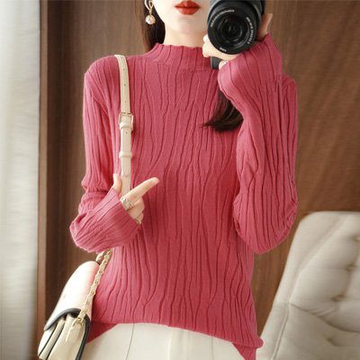 【レディースニット】柔らかい肌触り、上質ウールニット シンプルなデザインで体型を選ばない 2枚目半額
